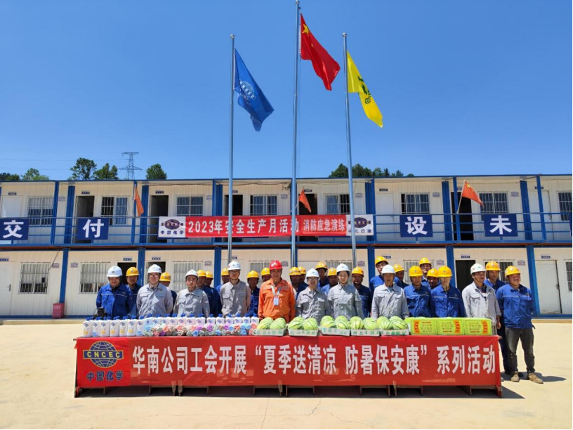 近日來,全國多地持續高溫,為保障職工生命健康和安全生產,華南公司工會積極開展“夏季送清涼 防暑保安康”系列活動。活動中,由華南公司班子成員帶隊,前往惠州立拓、中偉磷酸鐵、貴州息烽PPA等項目,為高溫酷熱中堅守崗位的一線員工送去組織的關懷和夏日的清涼。