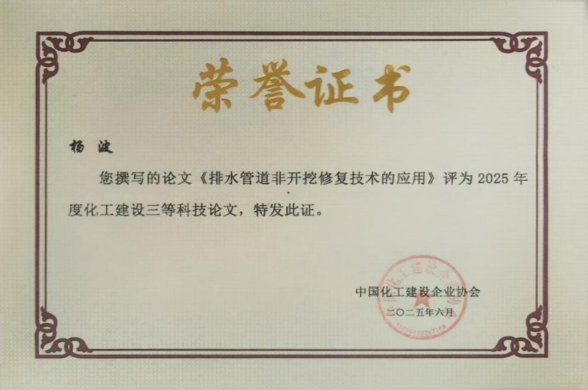 《排水管道非開挖修復技術的應用》論文源自中南公司質量負責人楊波對城市地下管網維護技術的深度探索。該研究聚焦城市地下老舊管道修復的實際需求,創新提出“微創”修復方案,相較傳統“開膛破肚”式施工,具備施工周期短、對周邊環境及建筑影響小、綜合成本低的突出優勢。應用該技術后,整體修復效率提升40%,地面破壞面積減少90%,既能大幅提高市政管網施工精度與效率,又能有效降低傳統破拆修復模式對城市交通秩序和居民日常生活的干擾,為城市地下管網更新改造提供了綠色高效的技術路徑。