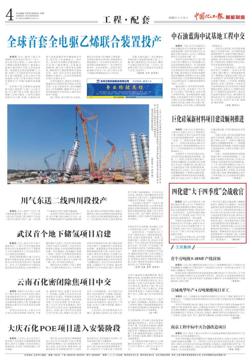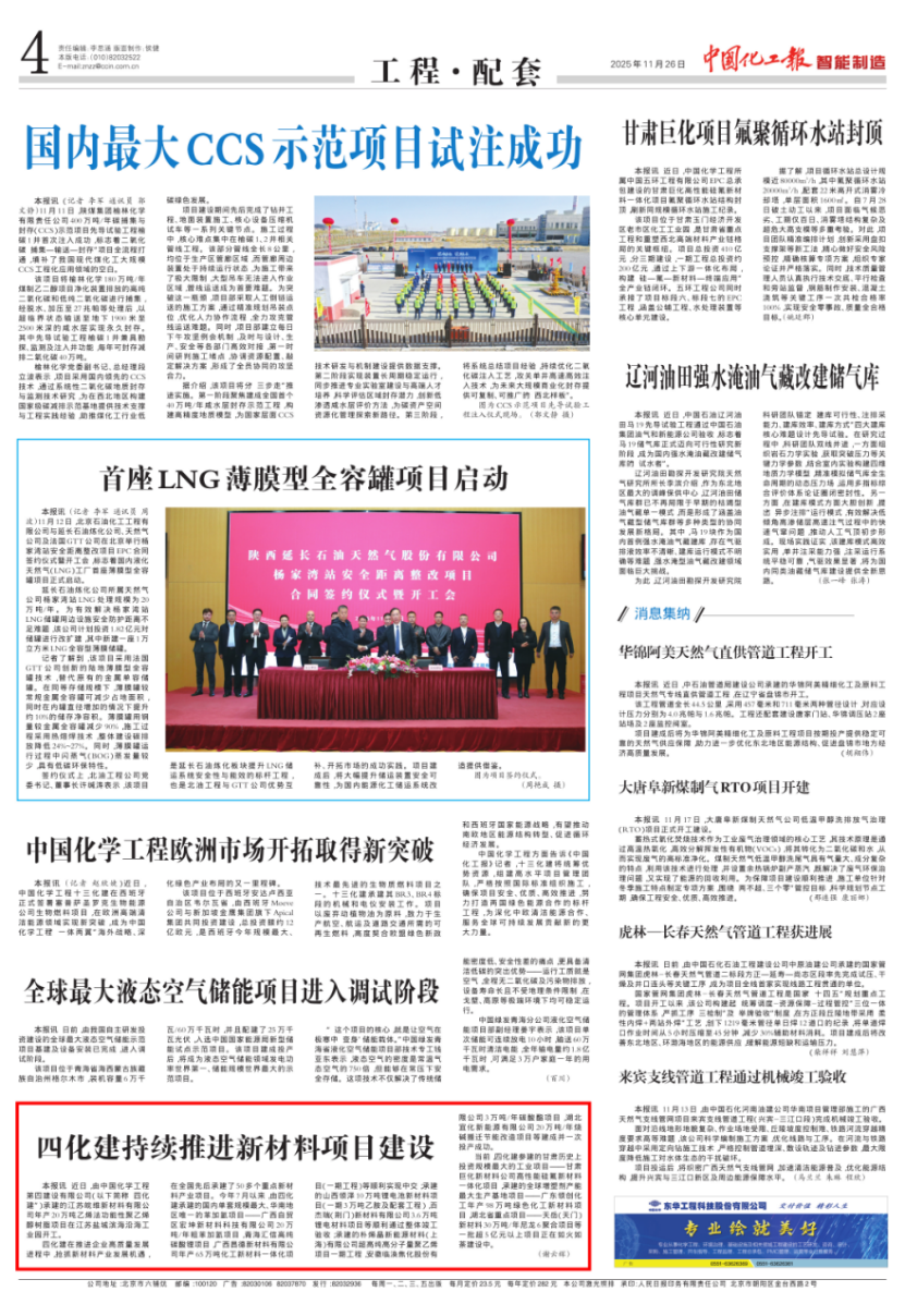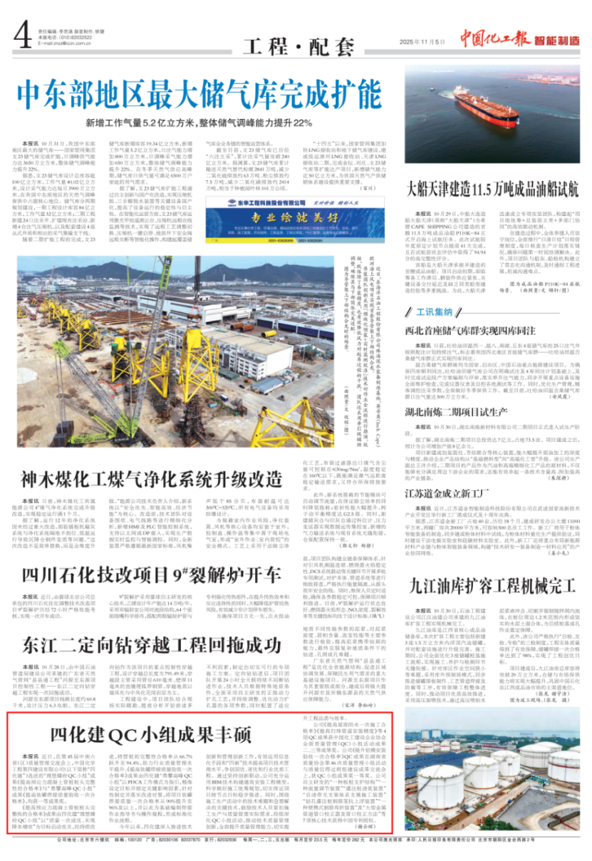 近日,中國(guó)石油和化學(xué)工業(yè)權(quán)威報(bào)紙、中國(guó)百?gòu)?qiáng)報(bào)刊——《中國(guó)化工報(bào)》連續(xù)刊發(fā)多篇報(bào)道,聚焦中國(guó)化學(xué)工程第四建設(shè)有限公司在2025年收官之際取得的系列發(fā)展成果,充分展現(xiàn)企業(yè)在新市場(chǎng)開(kāi)拓、重大項(xiàng)目攻堅(jiān)、技術(shù)創(chuàng)新驅(qū)動(dòng)、品牌文化塑造及新興產(chǎn)業(yè)布局等方面的綜合實(shí)力與奮進(jìn)姿態(tài)。